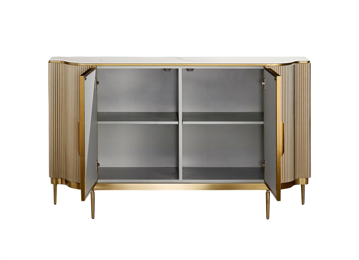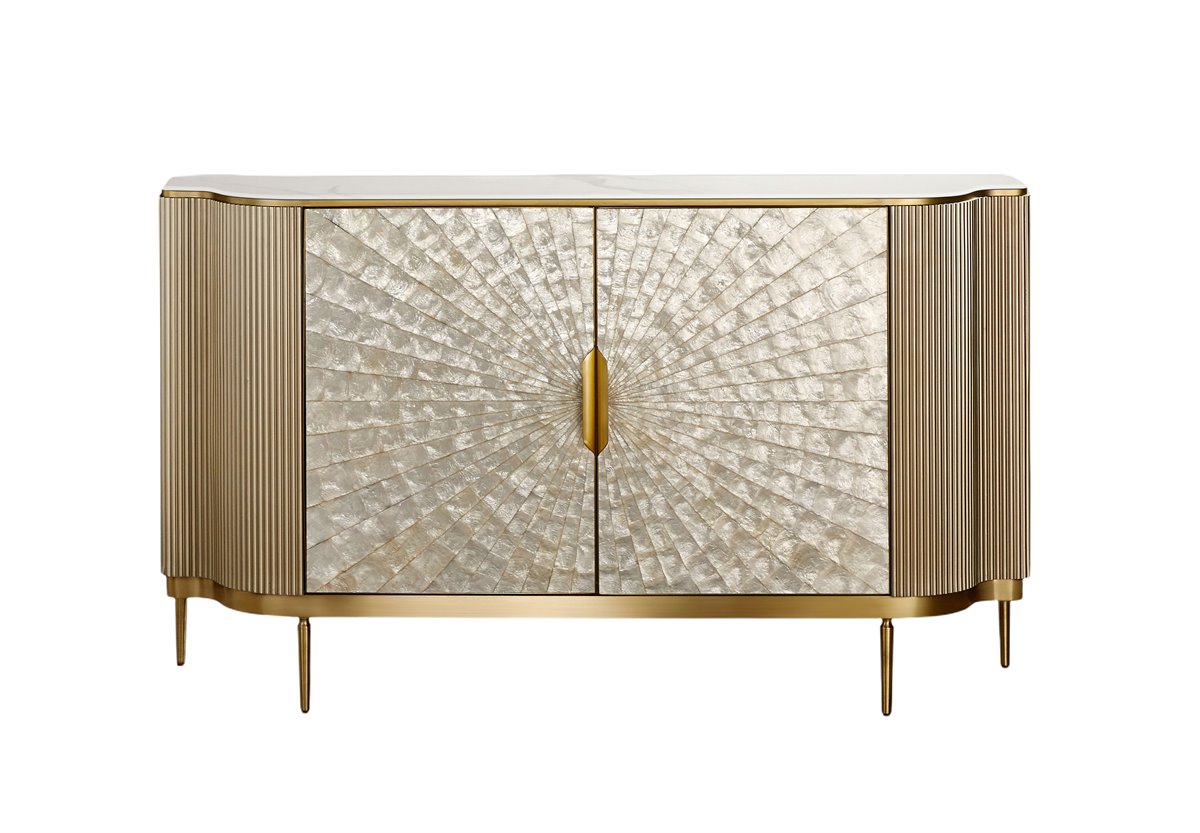 Atrévase con el aparador Stilig, acabado en un llamativo tono dorado. Esta pieza presenta un estilo glamuroso con una construcción de madera de ingeniería, que garantiza durabilidad y una sensación de alta gama. Con unas medidas de 88x150x40 cm, el aparador ofrece un amplio espacio oculto tras dos hermosas puertas batientes. El diseño prioriza un entorno sin desorden, ideal para quienes valoran tanto la estética como la funcionalidad en sus elecciones de mobiliario.