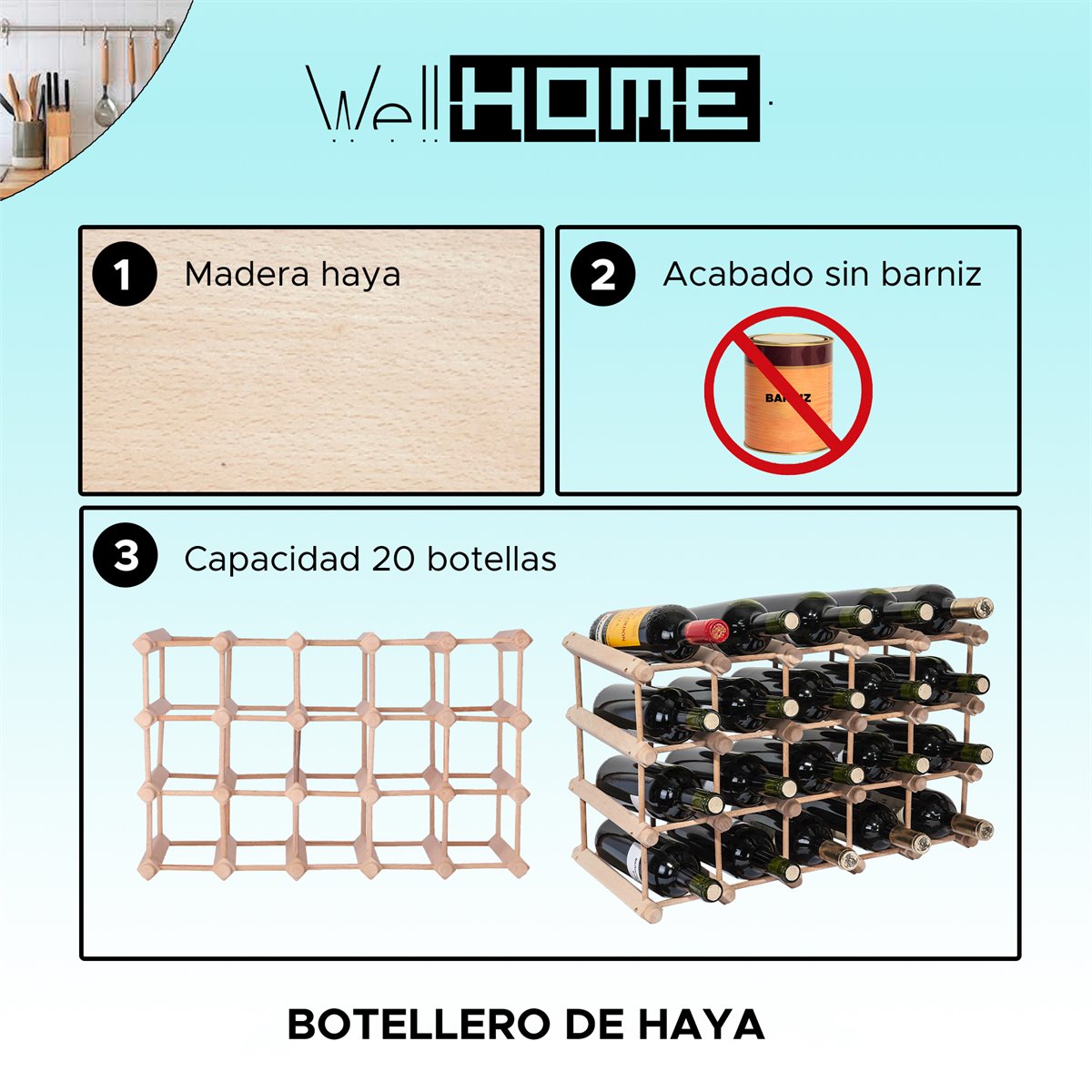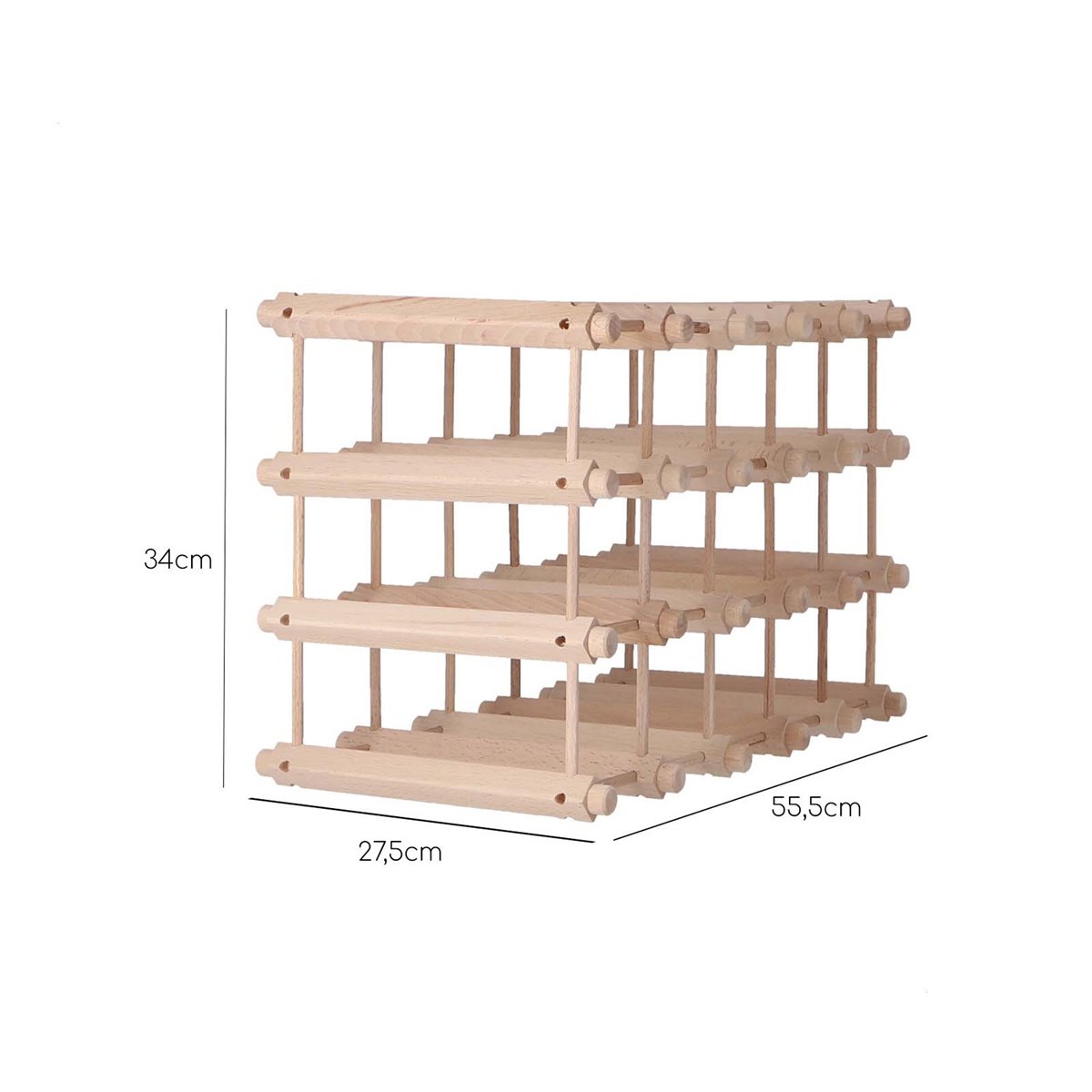 Botellero de madera de haya, acabado sin barniz, capacidad de 20 botellas (L:55,5 x F:27,5 x H:34)cm