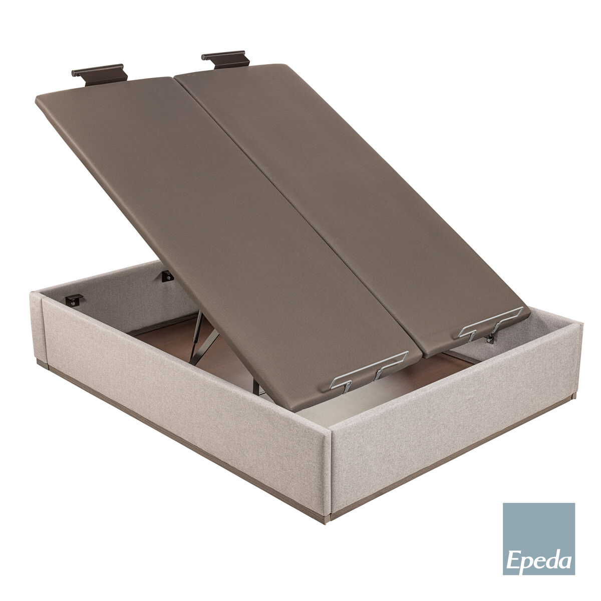 Este canapé abatible tapizado textil de alta capacidad combina estilo y funcionalidad. Su estructura metálica garantiza resistencia y durabilidad, mientras que su tapa doble es totalmente transpirable. Equipado con la tecnología Base Air System (B.A.S.), asegura una ventilación perfecta y una superficie duradera para un descanso de calidad. Dispone de tirador y zócalo de madera, así como de arquillo sujeta colchón. Posee una cómoda apertura frontal gracias a sus amortiguadores neumáticos, ofreciendo accesibilidad desde cualquier ángulo y sin ruidos molestos. Con su elegante cubeta tapizada en color city, es la solución ideal para cualquier habitación.