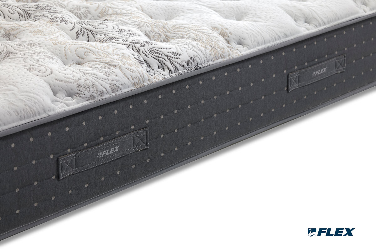 Total Protect: tecnología que actúa contra hongos, ácaros y bacterias, proporcionando una higiene óptima.Tejido Stretch con comportamiento Fresh Cool®, propiedad termorreguladora que equilibra las condiciones de temperatura y humedad del cuerpo al dormir.