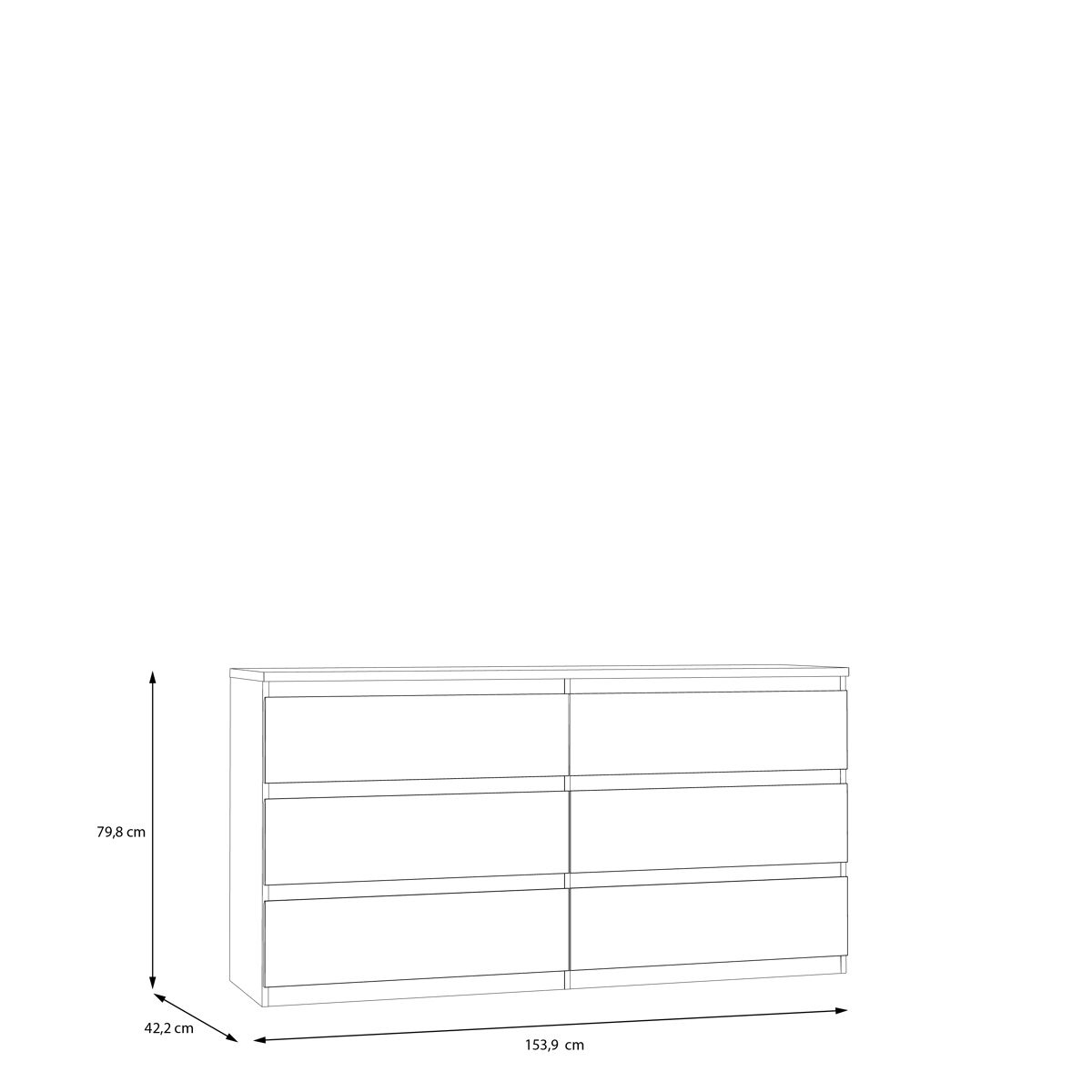 Descubre la funcionalidad y el estilo con la Cómoda NEVADA II en blanco mate. Este mueble cuenta con seis amplios cajones, perfectos para organizar ropa, accesorios y más. Su acabado blanco mate aporta un toque contemporáneo y elegante, complementando cualquier decoración. Ideal para dormitorios o salas de estar, su diseño robusto y suave al tacto garantizan durabilidad y una apariencia siempre moderna. Esta cómoda es una solución estética y práctica para mantener el orden y realzar tu espacio.