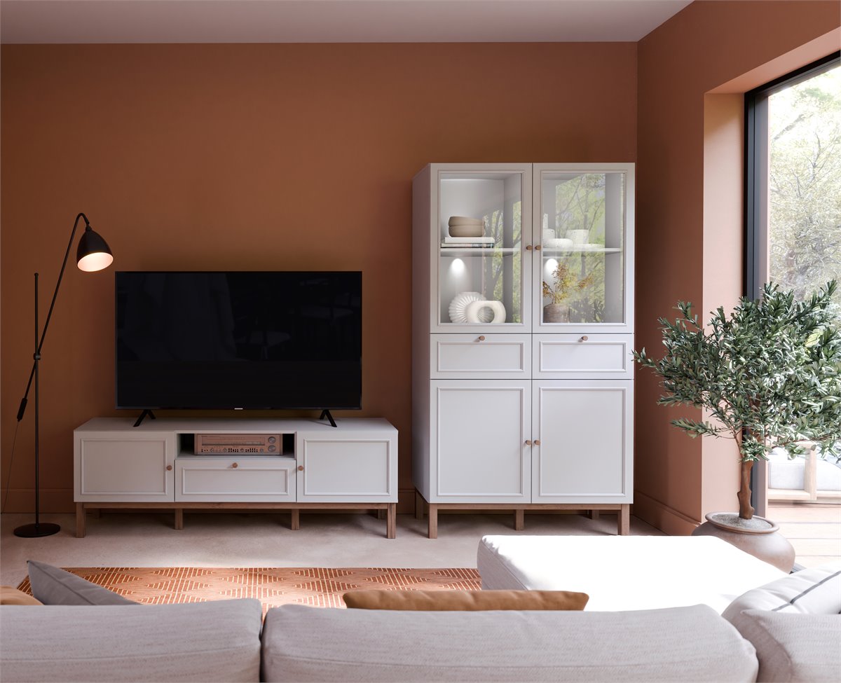 Si quieres conseguir más espacio en tu salón, el estante LISZT es una buena opción para aprovechar el soporte que te ofrecen las paredes. Una buena opción es ubicarlo sobre el televisor, entre una vitrina V alta y una baja a juego. Imagínate todo lo que puedes colocar en ella: libros, películas, fotografías, elementos de decoración, un pequeño equipo de sonido, la mini estación meteorológica... Sácale todo el partido posible a la estantería LISZT y deja tu pared un poco menos desnuda.