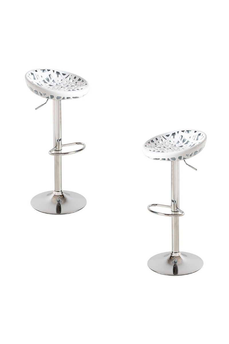 La base cromada añade un toque elegante y sofisticado, ideal para integrar estos taburetes en cualquier estilo de decoración. Este conjunto permite crear armonía visual y funcional en hogares o espacios profesionales.