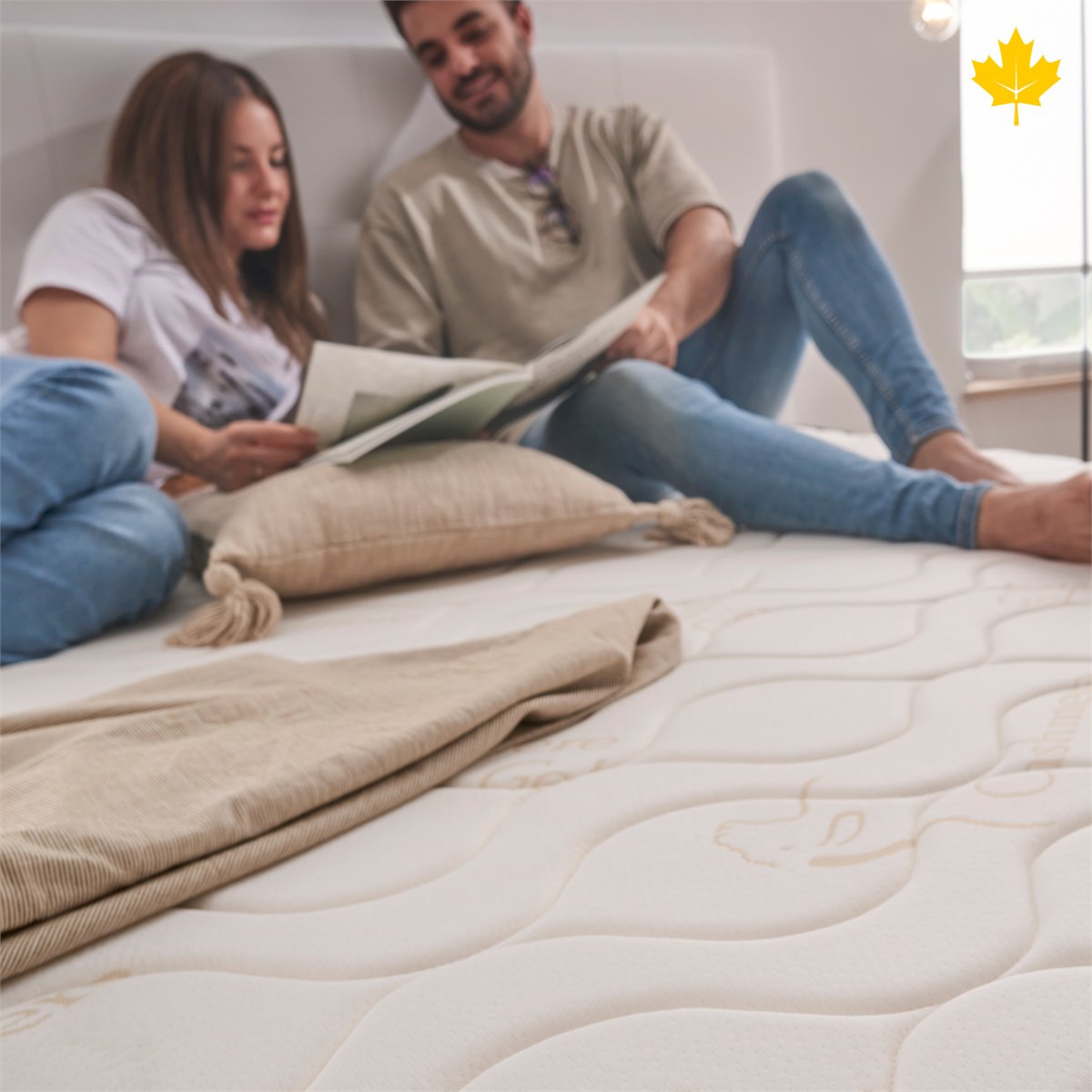 El pack colchón y canapé Descansín está diseñado para ofrecerte un descanso cómodo, saludable y práctico. El colchón cuenta con una estructura microcelular que proporciona una transpiración máxima y constante renovación del aire, lo que ayuda a mantener una temperatura agradable durante la noche. Es un colchón versátil, perfecto tanto para quienes duermen solos como para parejas, ya que su tejido especial ofrece independencia de lechos, evitando que notes los movimientos de tu acompañante. Su núcleo HR es de alta durabilidad y resistente al hundimiento, formado por cuatro capas que también controlan la sudoración. Al no tener muelles, este colchón es completamente silencioso. Además, su tacto suave y adaptable viene gracias a una capa de gel y otra superficial de Strech Silver que se ajusta a tu cuerpo. También cuenta con tejidos especiales que combaten bacterias, ácaros y hongos, y una capa viscoelástica con tejido antisudoración que mejora la higiene y el confort.