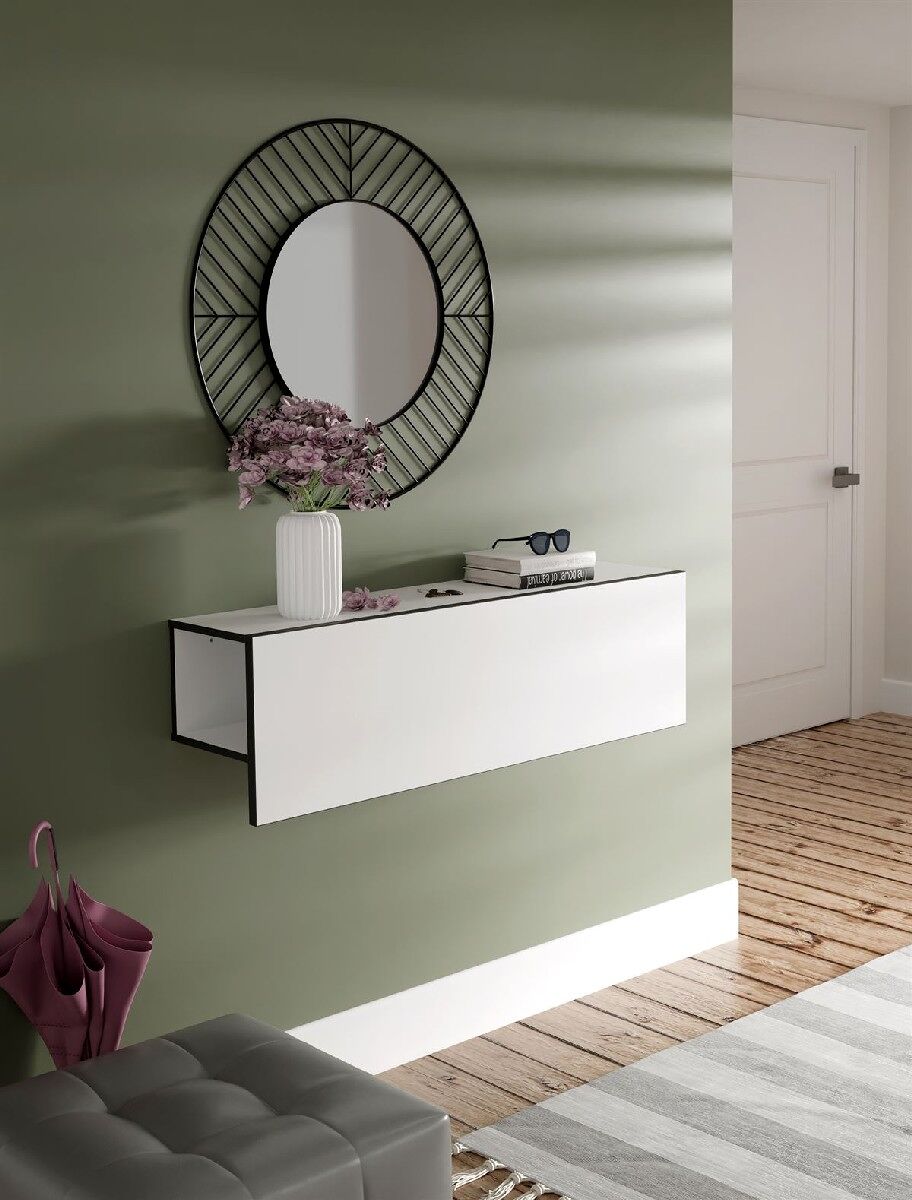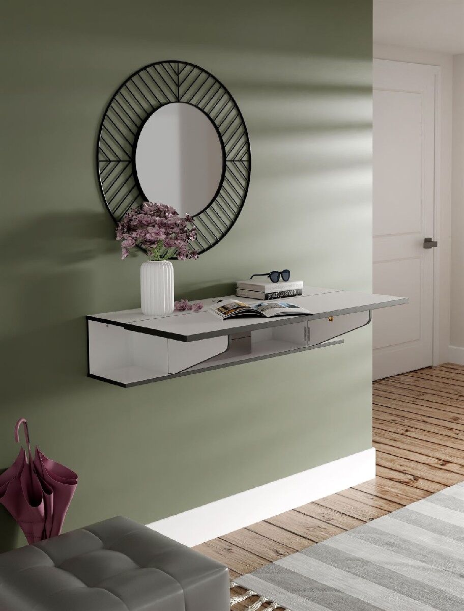 El recibidor MULTIFUNCIONAL en blanco mate/gris de 120 cm de ancho, 35 cm de alto y 27 cm de fondo es la pieza perfecta para dar la bienvenida a tu hogar con estilo y funcionalidad. Con un diseño elegante y versátil, este mueble ofrece espacio de almacenamiento adicional gracias a sus cajones y estantes. Su combinación de colores blanco mate y gris añade un toque moderno y sofisticado a tu entrada. Fabricado con materiales resistentes de alta calidad, garantiza durabilidad y practicidad. Organiza tus llaves, correspondencia y otros objetos fácilmente en este recibidor MULTIFUNCIONAL y dale un toque de elegancia a tu hogar. ¡Recibe a tus invitados con estilo y aprovecha al máximo cada rincón de tu hogar con este práctico mueble!